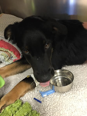 Kyra, an 8-month-old Rottweiler/ Lab mix, was rushed to our hospital on an emergency, where she was lethargic, dull and her gums were white after having a routine surgery done on Sept 29th. Her owners arrived here on Sept 30th. They had previously brought Kyra to her regular clinic to get checked out. She was lethargic, dull, wasn’t eating or drinking. They performed blood tests at her clinic, where they determined she was anemic, and bleeding internally. Her owners were faced with a few tough decisions. They could perform the surgery at her regular clinic. However, they do not have access to perform blood transfusions. Or, they could travel to the Riverview Animal Hospital and get the surgery done here and also have a blood transfusion. Kyra’s owners decided on coming here.